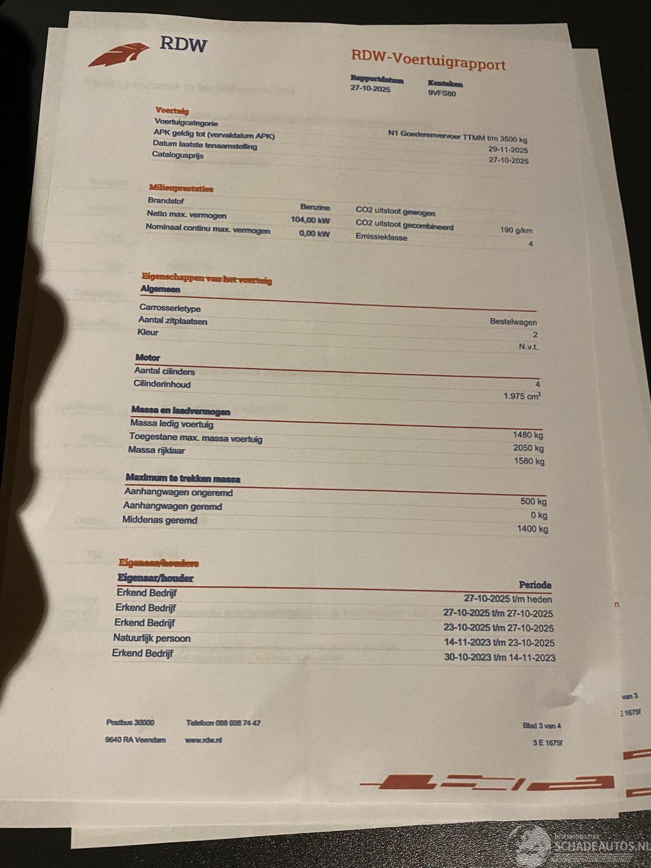 Auto wordt verkocht zoals ie er staat met schade zonder enige vorm van garantie.