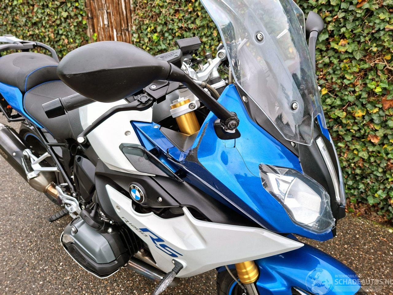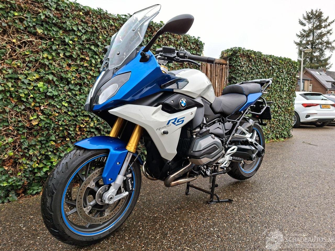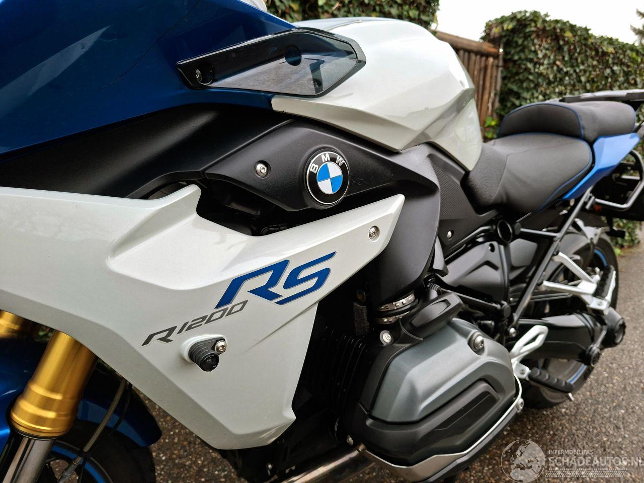 Deze BMW R 1200 RS uit 2015 is een krachtige 1200cc sporttourer met het kenmerkende boxerblok en cardanaandrijving. De blauw-witte uitvoering met Bos performance uitlaat