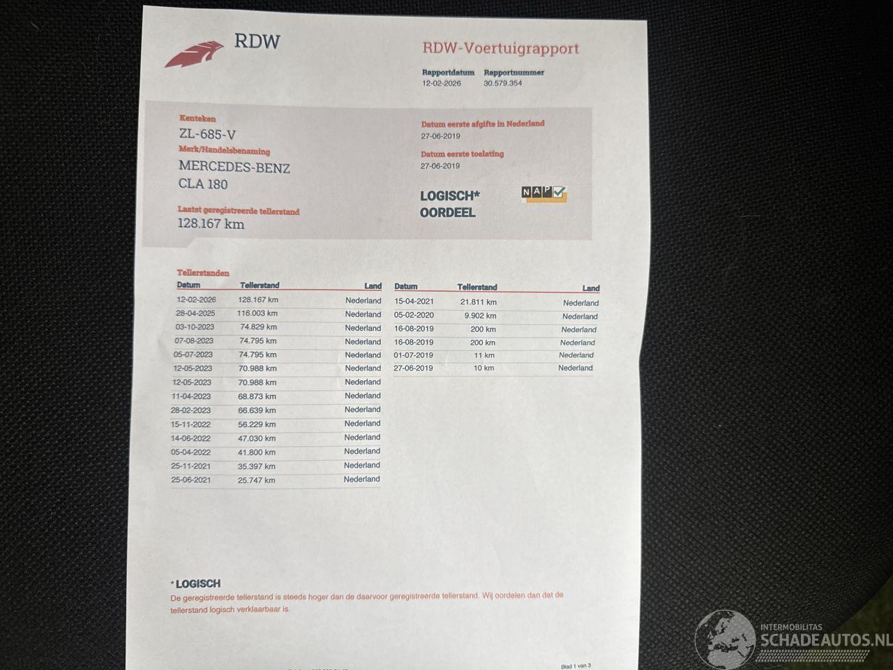 Modell: CLA-KLASSE 180 CLA SEDAN 128167 KM BOUWJAAR 2019 11500 EURO