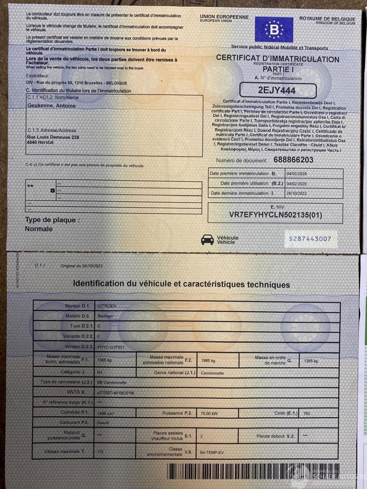 Fahrgestellnummer: VR7EFYHYCLN50****
