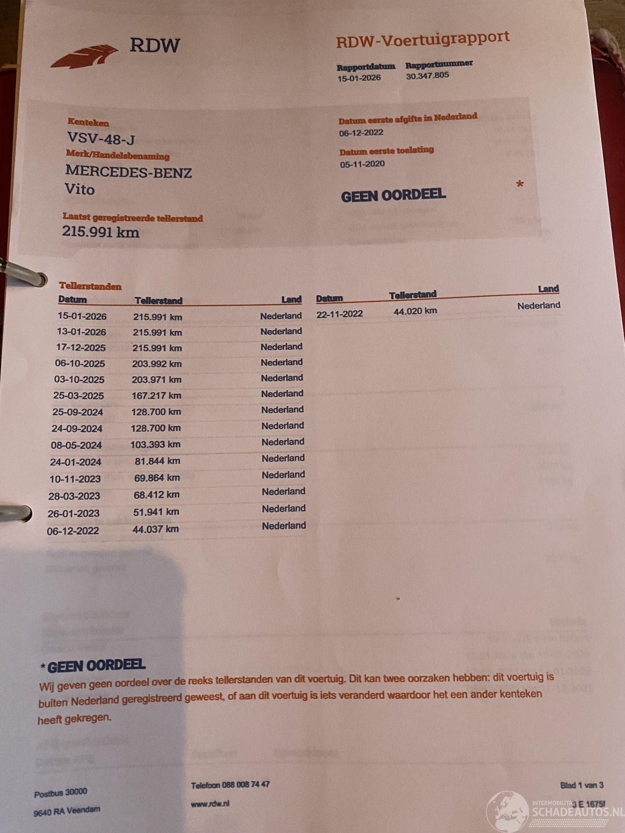 Er is eventueel een kleine video van deze Vito/schade via WhatsApp beschikbaar.