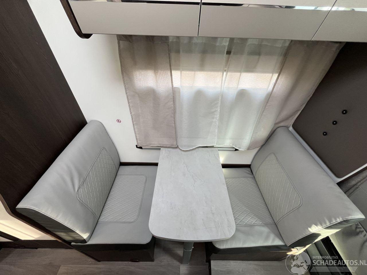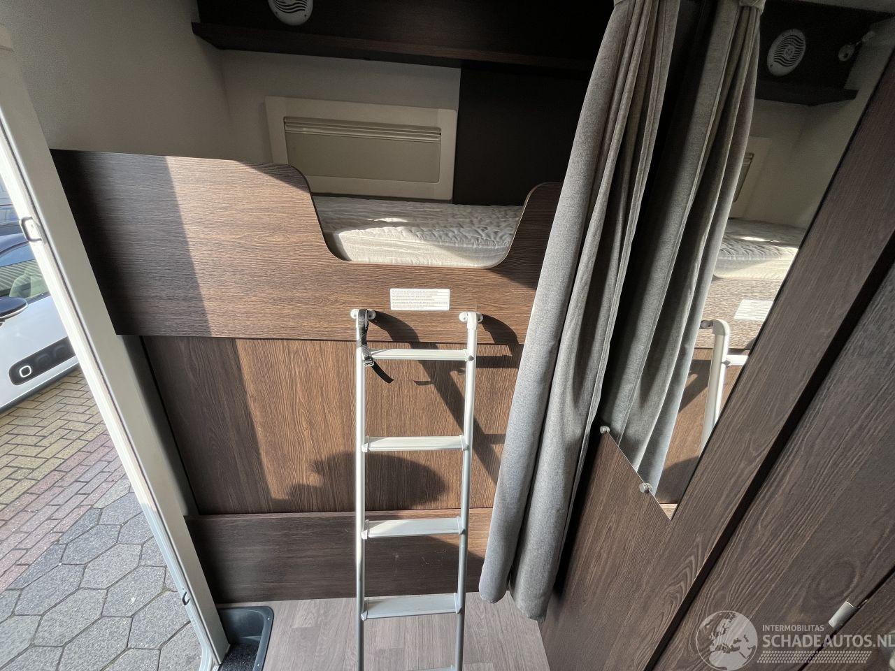 7 goedgekeurde zitplaatsen en 7 slaapplaatsen. Indeling: Voorzien van een ruim alkoofbed boven de cabine (155x200 cm) een stapelbed achterin (80x210 cm) en ombouwbare eetzitgroepen.