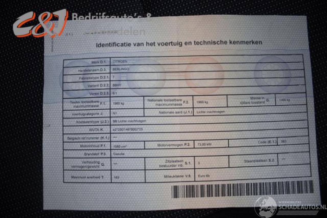 Model: BERLINGO Berlingo, Van, 2008 / 2021 1.6 BlueHDI 100