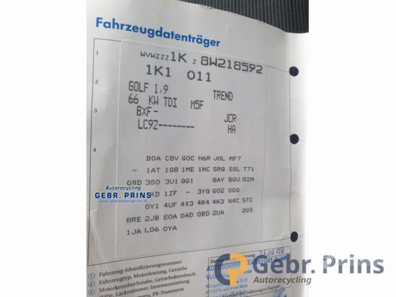 Model: GOLF Golf V (1K1), Hatchback, 2003 / 2010 1.9 TDI