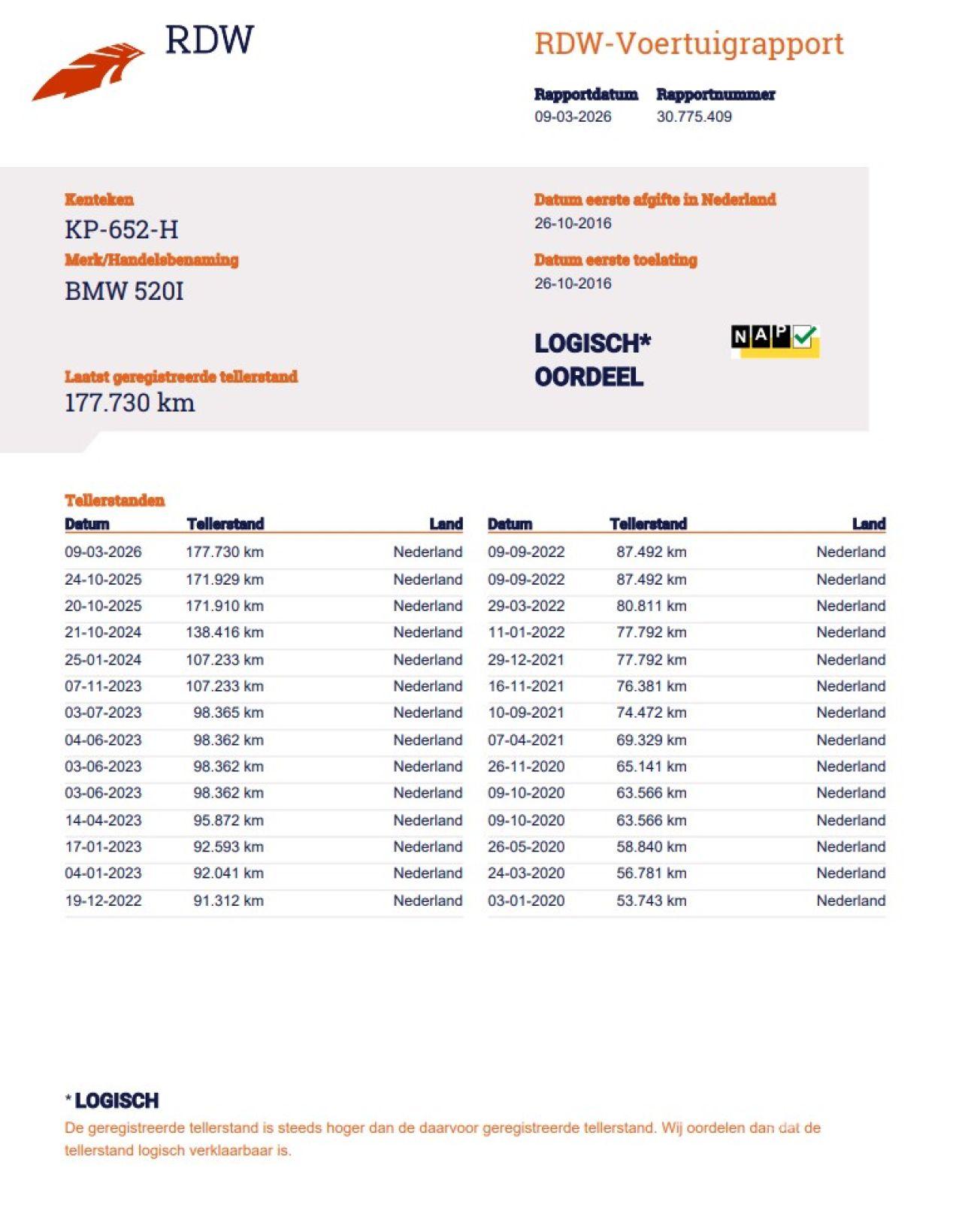 Verificación del kilometraje (NAP)
