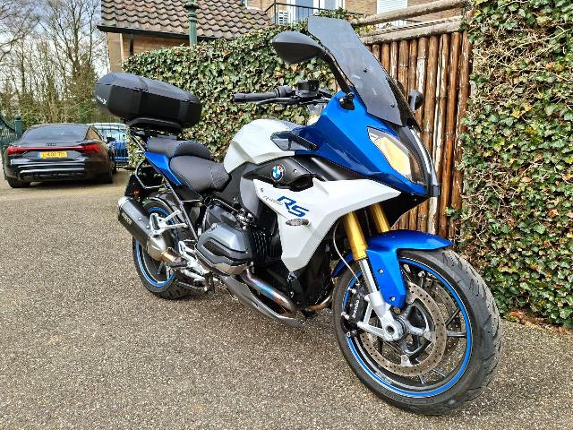 Compleet kenteken Deze BMW R 1200 RS uit 2015 is een krachtige 1200cc sporttourer met het kenmerkende boxerblok en cardanaandrijving. De blauw-witte uitvoering met Bos performance uitlaat carbon achterspatbord en kofferrack geeft de motor een sportieve en luxe uitstraling. De motor staat er verzorgd bij met slechts lichte gebruikerssporen passend bij leeftijd en gebruik. Ideale keuze voor wie comfortabele toerritten wil combineren met strak stuurgedrag en veel uitrusting.