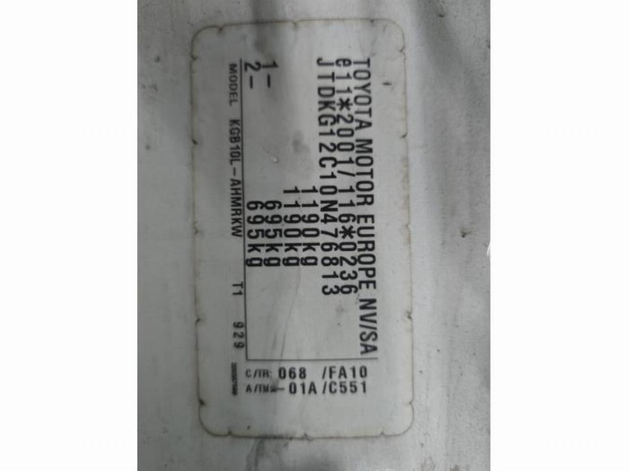 Numéro de chassîs: JTDKG12C10N4*****