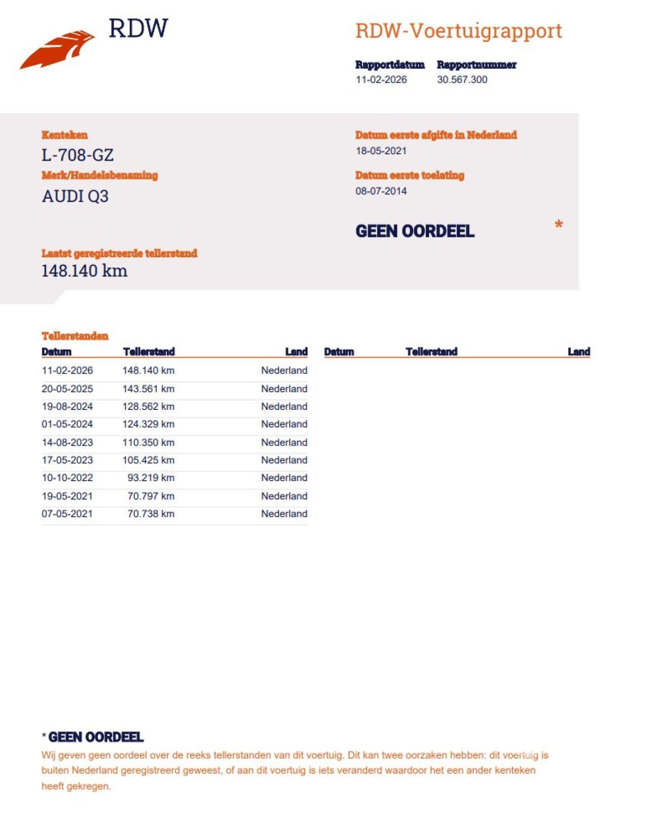 Indication du compteur: 148.140 KM