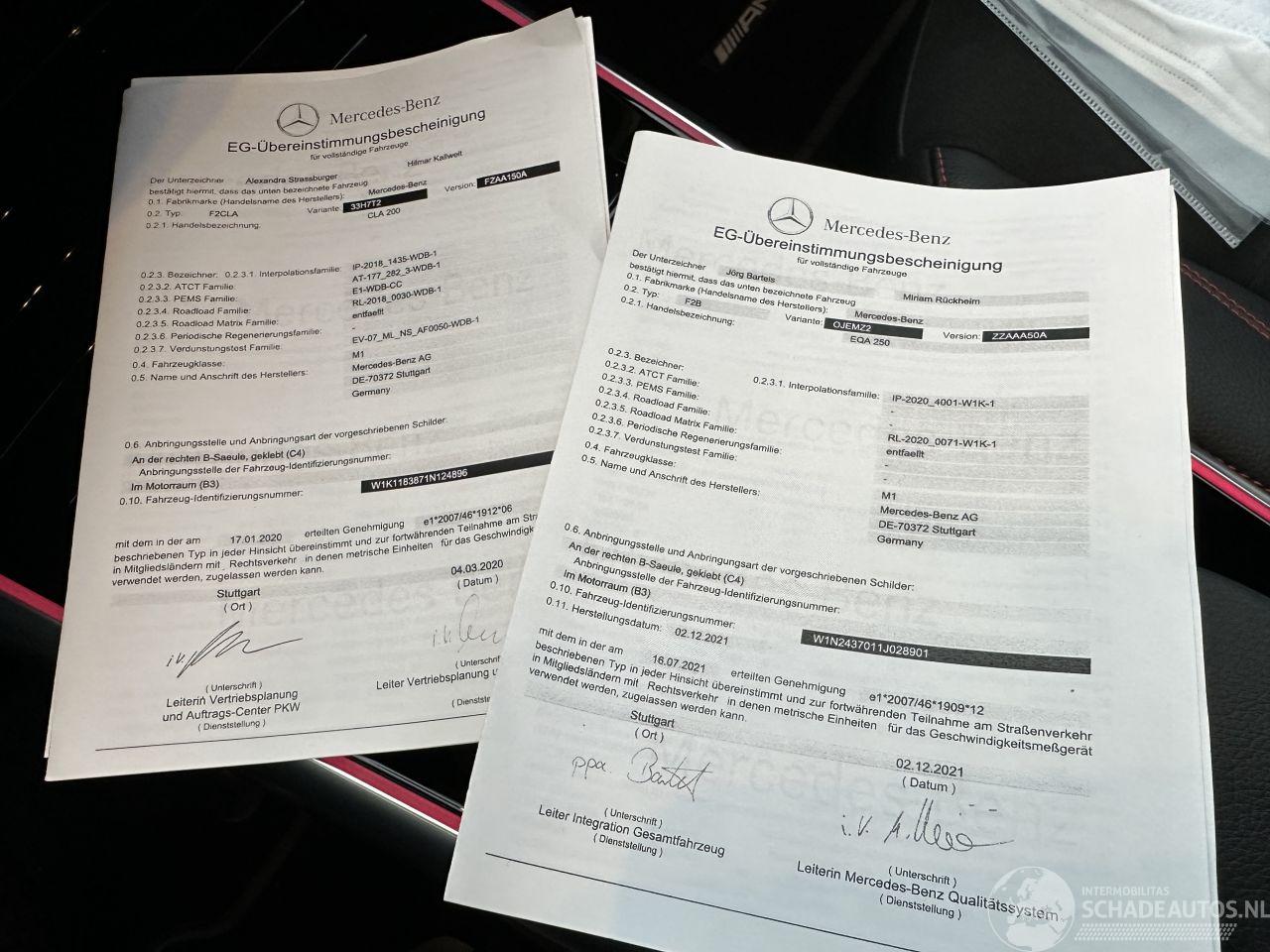 Bomvolle EQA 250 Electric 190pk AUTOMAAT + F1 AMG BUSINESS SOLUTION - SFEERVERLICHTING - NAVI - CAMERA - WIDESCREEN - LINE + SIDE + VERKEERSTEKEN + FRONT ASSIST (active remsysteem) - 2x laadkabels + boekjes + 2x sleutels - elektr achterklep - uitklapbare trekhaak - keyless entry + start - 18 inch lmv - sportonderstel - sportinterieur half leer + alcantara + orthopedische voortstoelen - privacy glass - pdc rondom - full matrix xenon led + led achterlichten - AUTOMAAT + F1 flippers op stuurwiel (stuurschakeling) - ZWARTE HEMELBEKLEDING - Actieradius elektrisch stad WLTP