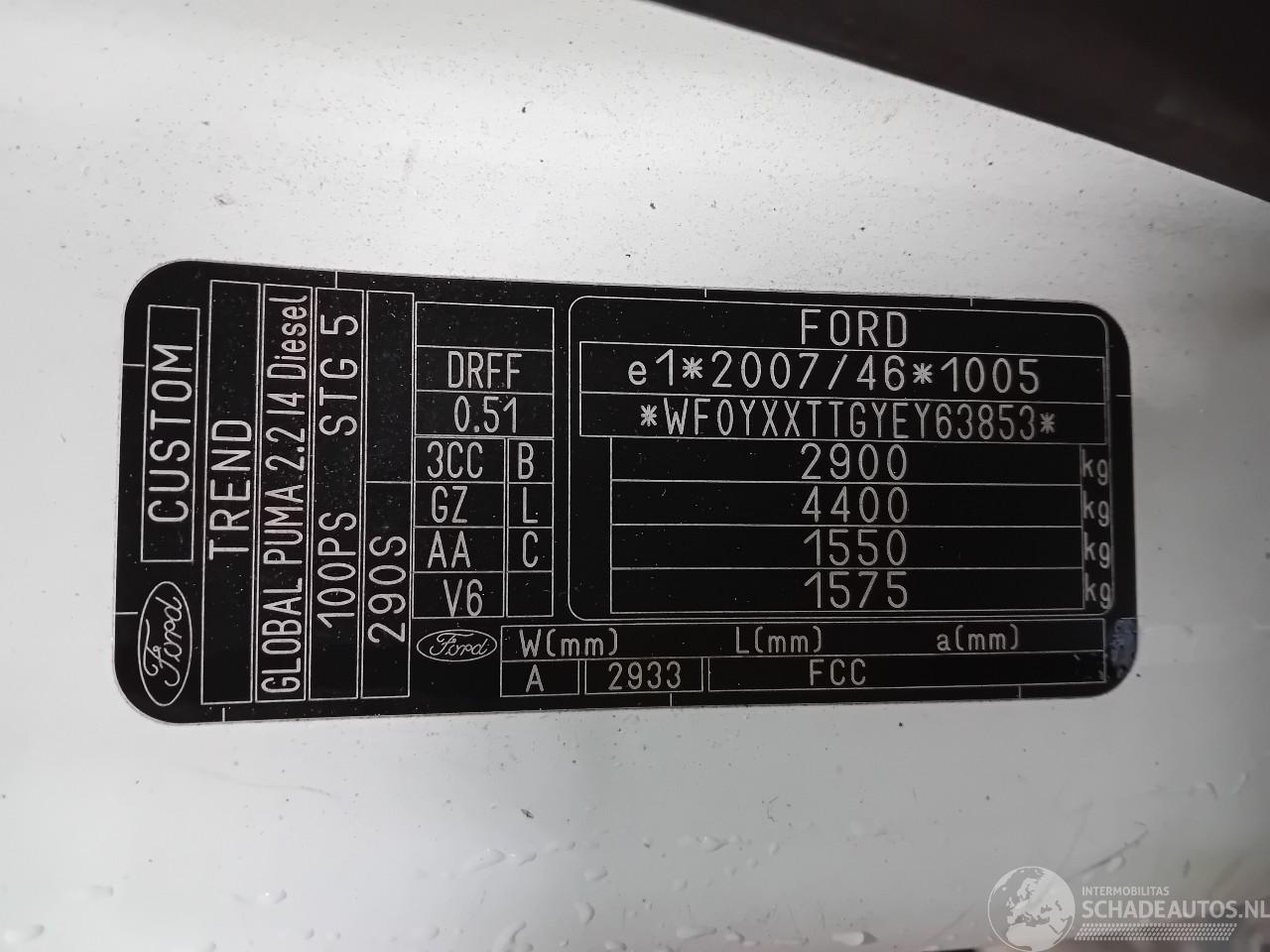 Modello: TRANSIT Transit Custom Van 2.2 TDCi 16V (DRFG) [74kW] (04-2012/06-2016)