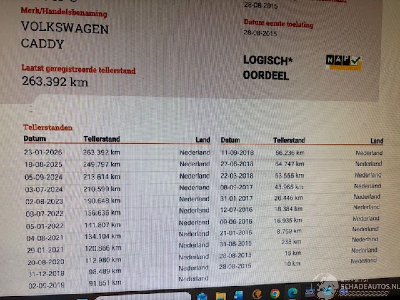 VW Caddy met lichte voorschade koelers ok boeken sleutels erbij APK 05-09-2026 Scherpe prijs MARGE