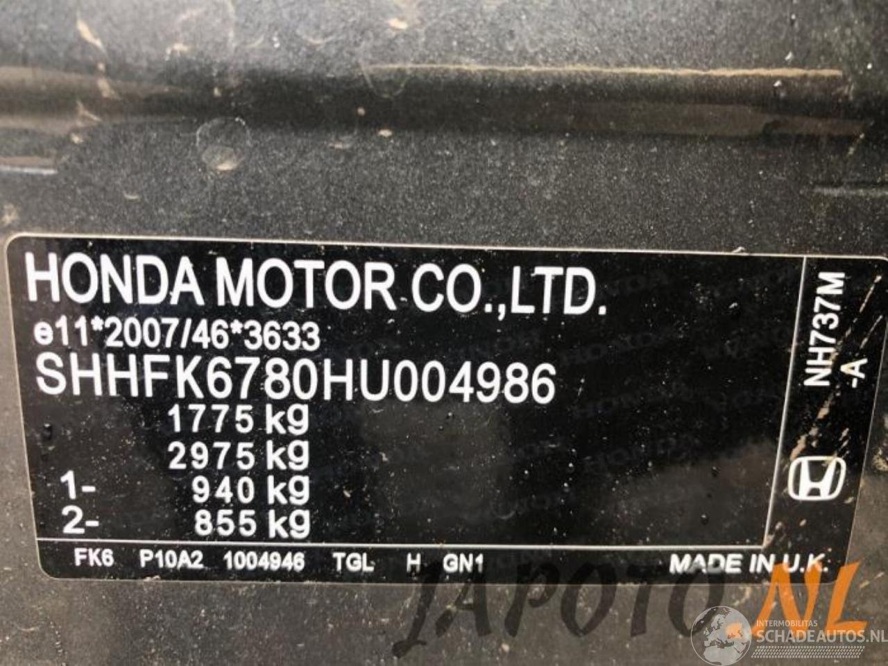 Numer nadwozia / vin: SHHFK6780HU0*****