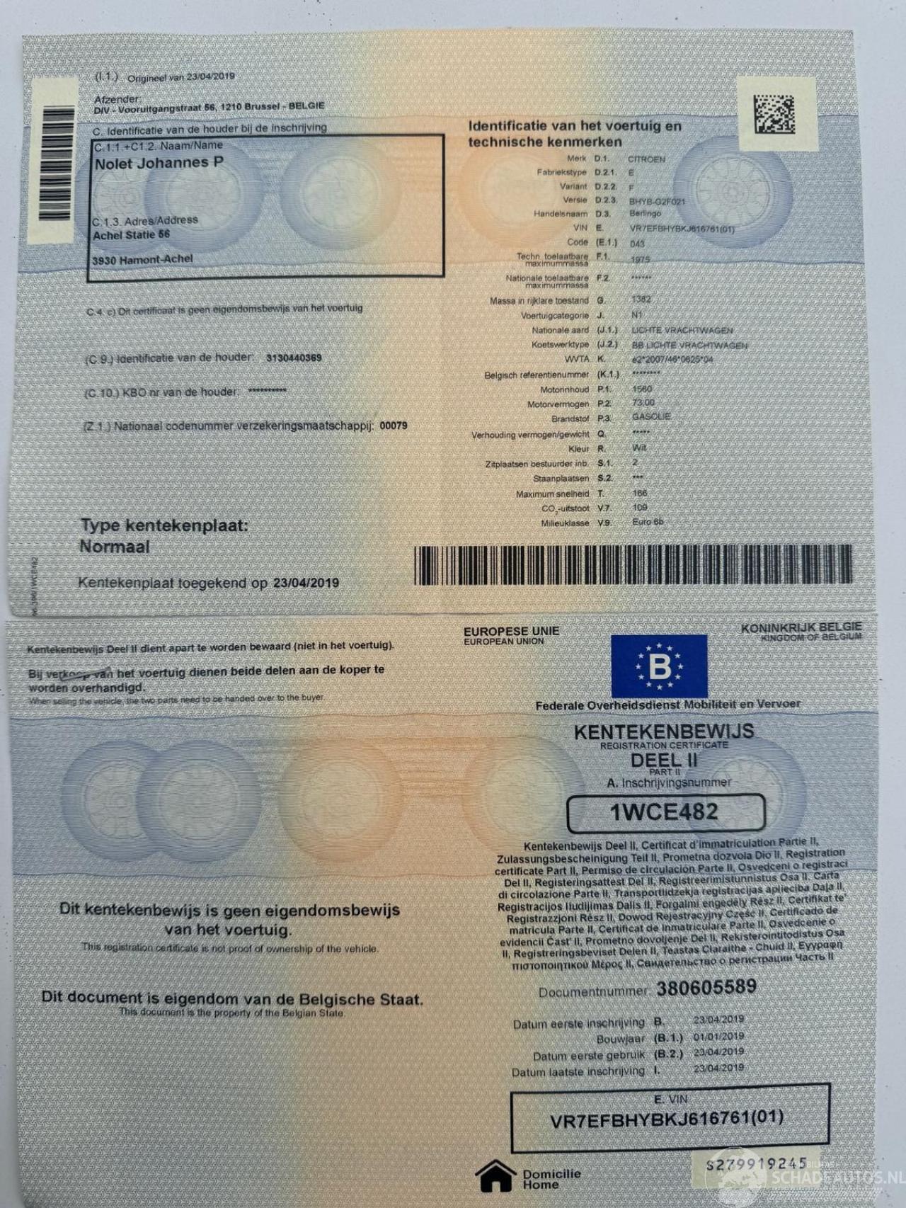 Reg. Certificate(I+II)=OK, C.O.C=OK, CarPass=OK