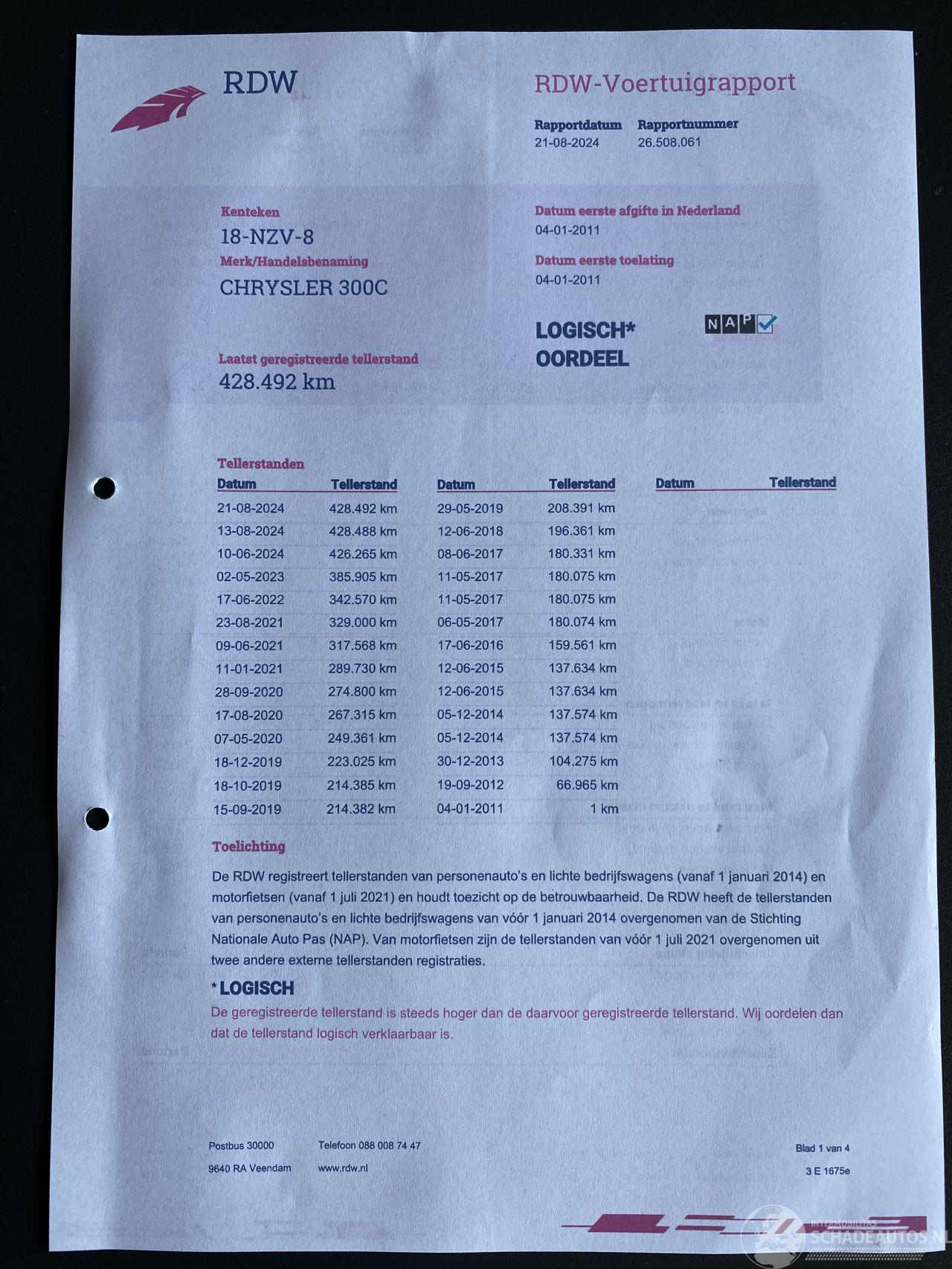 Super nette 300C voor z’n kmstand handrem blijft wat hangen dus beter op aanhanger vervoeren