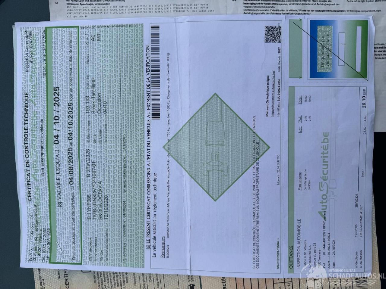 Reg. Certificate(I+II)=OK, C.O.C=OK, CarPass=OK, Technical Control required