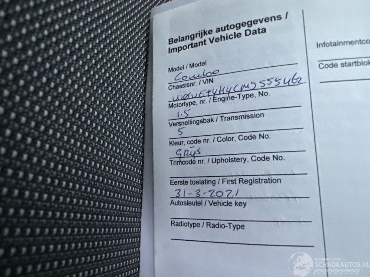 Model: COMBO 1.5D Turbo 102pk Euro.6 L2 Edition - Nap - Navi - Cam - Solar Dak - Clayton Lps Ll - Pdc - Trekh - Klapdeuren