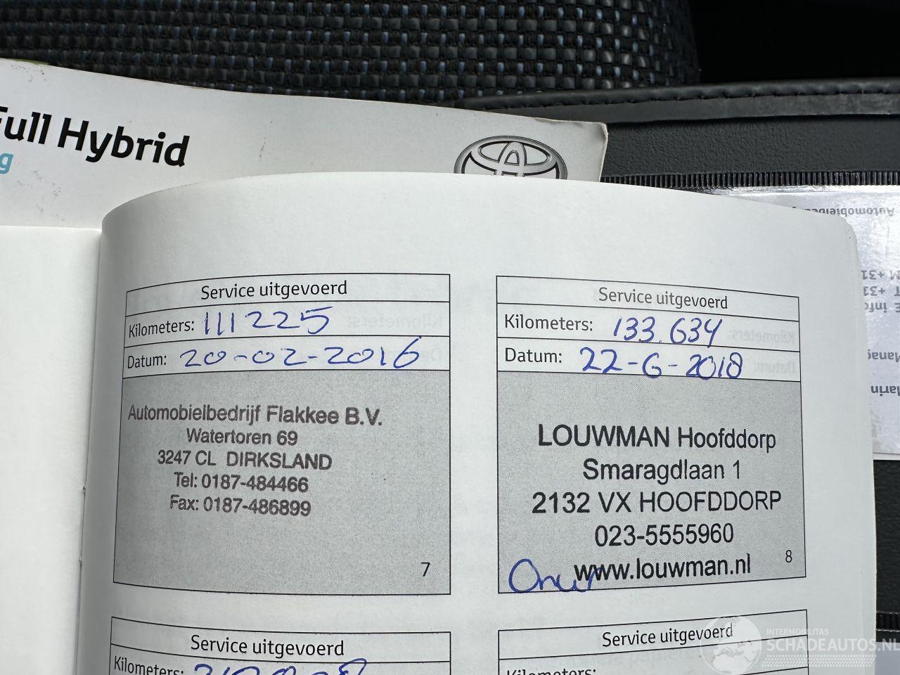 1.8 Full Hybrid Automaat EXECUTIVE 5drs - boekjes + historie + 2x keyless sleutels aanwezig - goed onderhouden (laatste beurt gehad bij 210dkm) - led + mistlampen in voorbumper - achteruitrij camera - keyless entry + start - pdc achter - parelmoer metallic lak - elektr inklapbare buitenspiegels - 17 inch lmv - navi prof + cd + dvd + stuurbediening - digitale airco - cruise control - elektr pakket - licht + regensensor + aut dimmend binnenspiegel - zeer luxe uitvoering