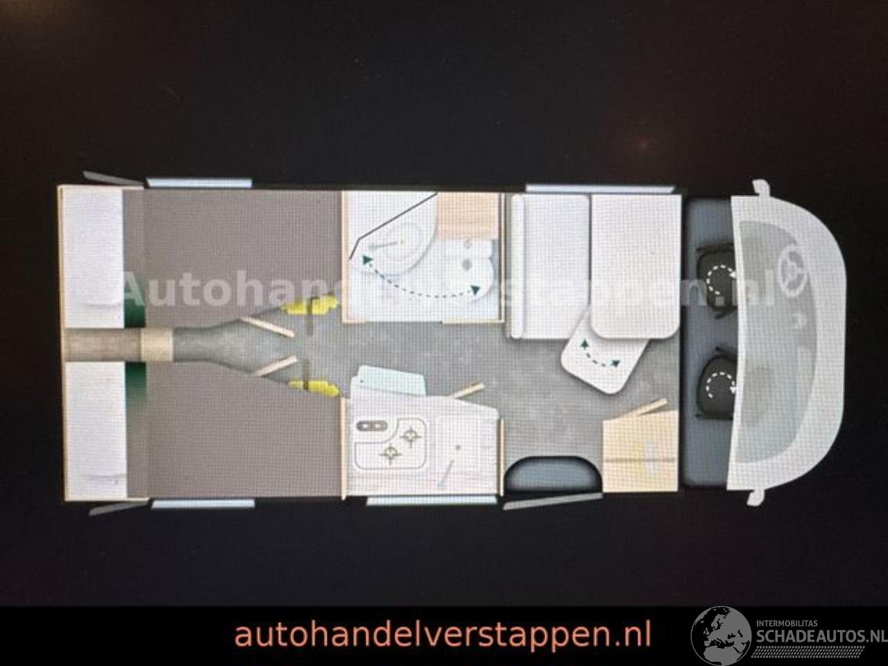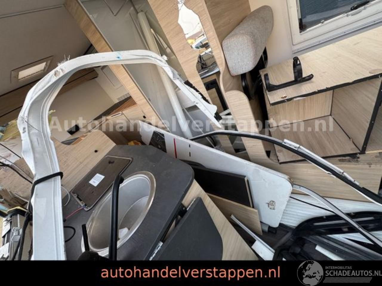 een moduleerbare badkamer en twin-bedden die kunnen worden omgevormd tot een kingsize bed.\\* Wit chassis\* Automatische airco in cabine\* Dubbele airbag\* Elektrische handrem\* Fix and go\* Draaistoelen die in hoogte verstelbaar zijn
