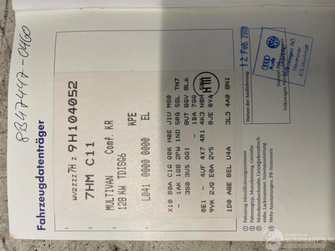 Model: TRANSPORTER Multivan T5 (7E/7HC/7HF/7HM), MPV, 2003 / 2015 2.5 Tdi