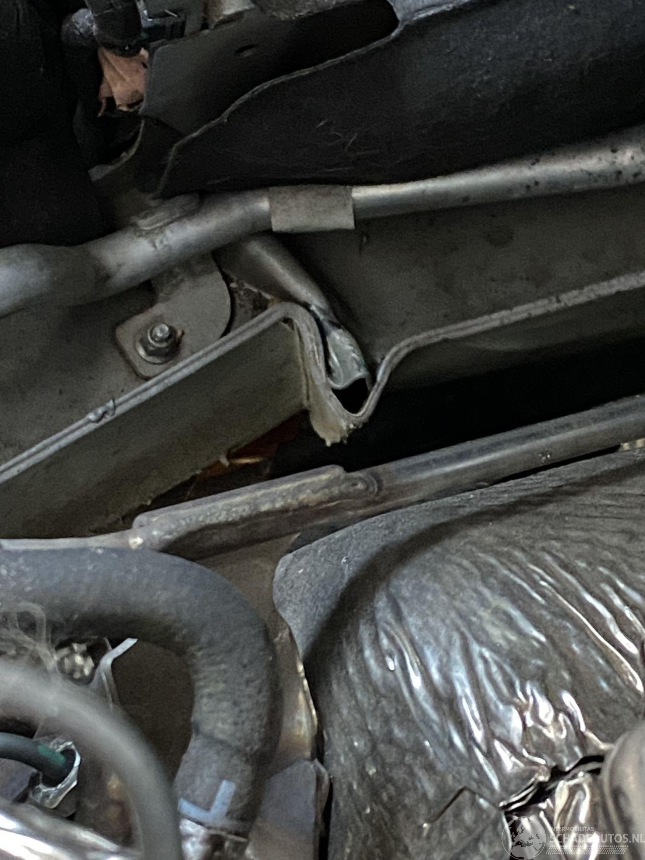 Midden voor een stevige paal of boom geraakt dwarsbalk heeft chassisbalken naar elkaar toe gebogen en hebben verderop naar achter wat knikken koelers staan tegen met motorblok dus risico motor deze start ook niet maar dat kan ook door afgaan airbags komen op zich lijken binnenschermen en buitenschermen nog in tact maar kan absoluut geen garantie geven op deze schade