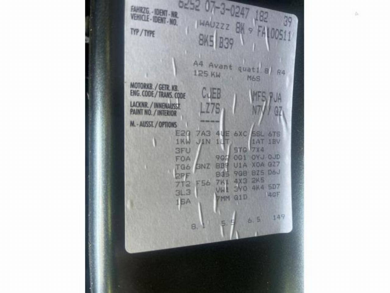 Model: A4 A4 Avant (B8), Combi, 2007 / 2015 1.8 TFSI 16V Quattro