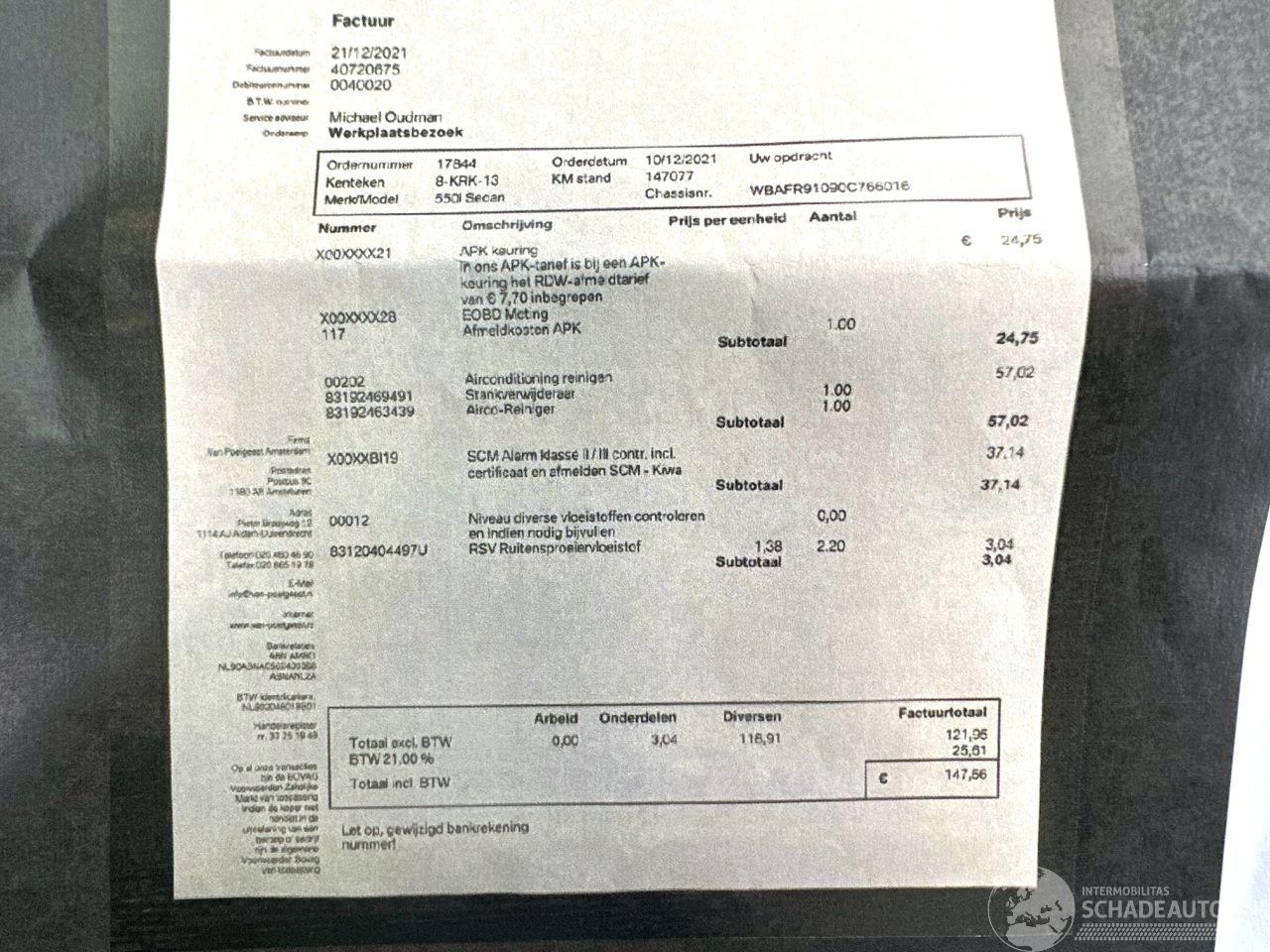 Volledig rijdbaar - zeer lichte schade zie fotos - geen storingen - dak licht gedeukt + portier la + oude restyle deukje portier ra - full fahrbereitet - buiten de schade om een zeer nette en bijzonder dikke bmw 550i sedan