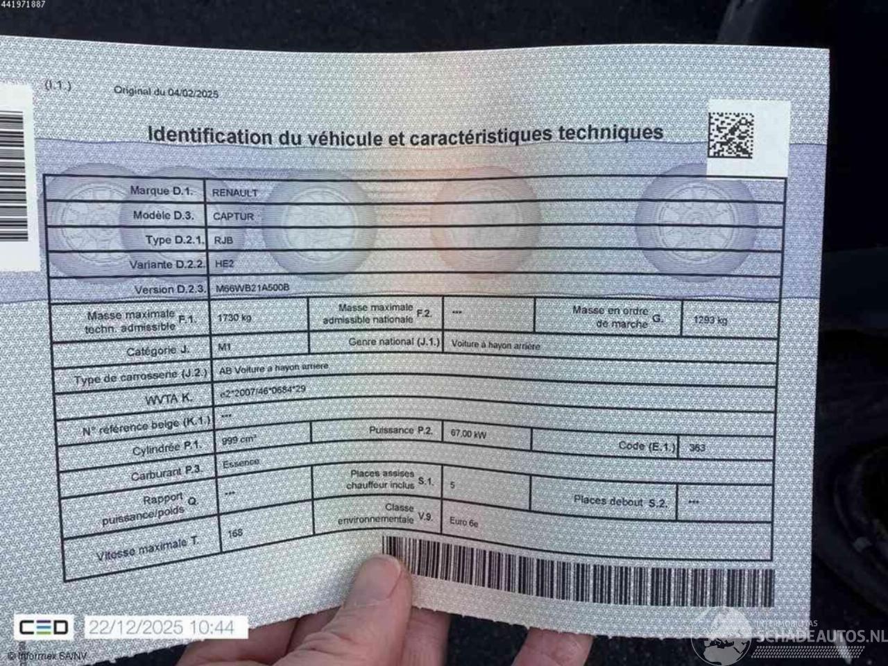 Vehicle identification number: VF1RJB0027421****