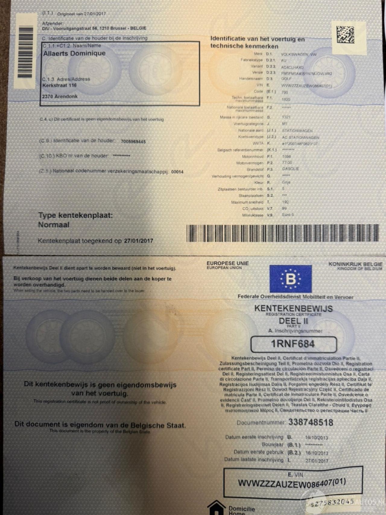 Reg. Certificate(I+II)=OK, C.O.C=OK, CarPass=OK, Technical Control required