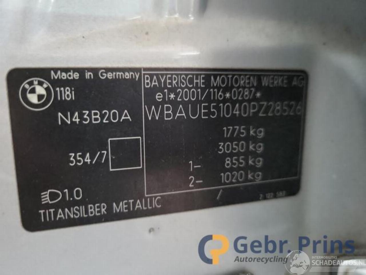 Modèle: 1-SERIE  1 Serie (E87/87N), Hatchback 5-drs, 2003 / 2012 118i 16V