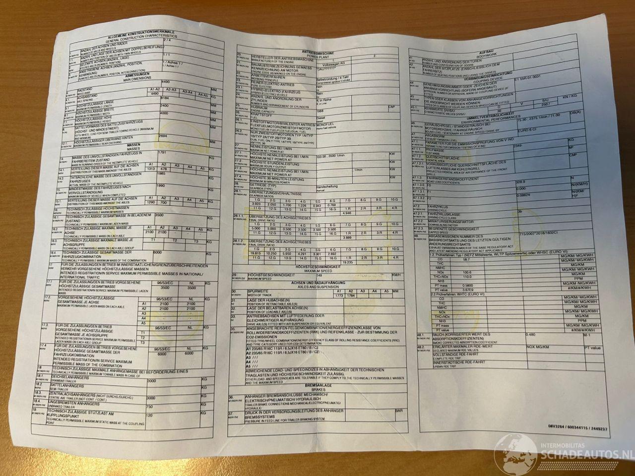 Modèle: TGE 35 2.0 103 KW VRIESWAGEN -20