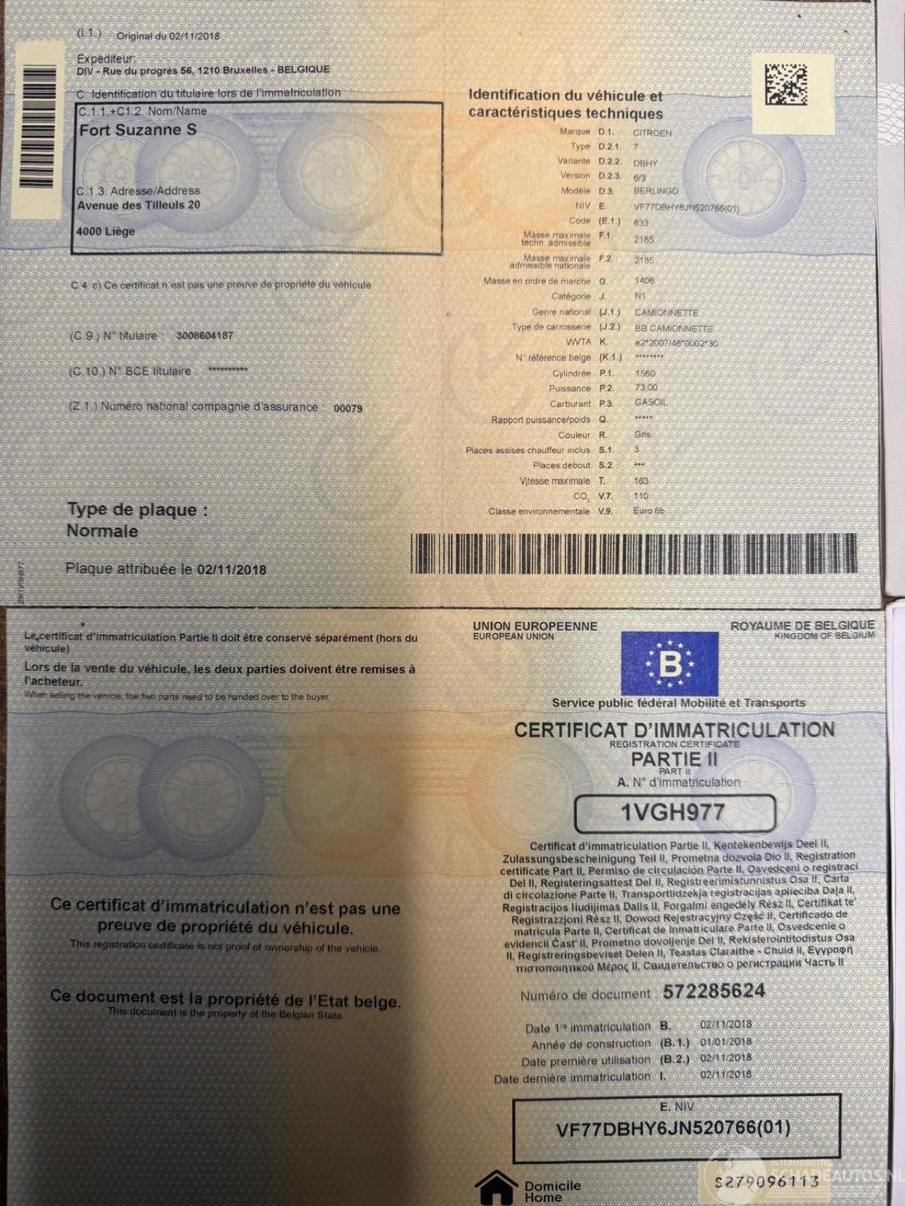Numéro de chassîs: VF77DBHY6JN52****