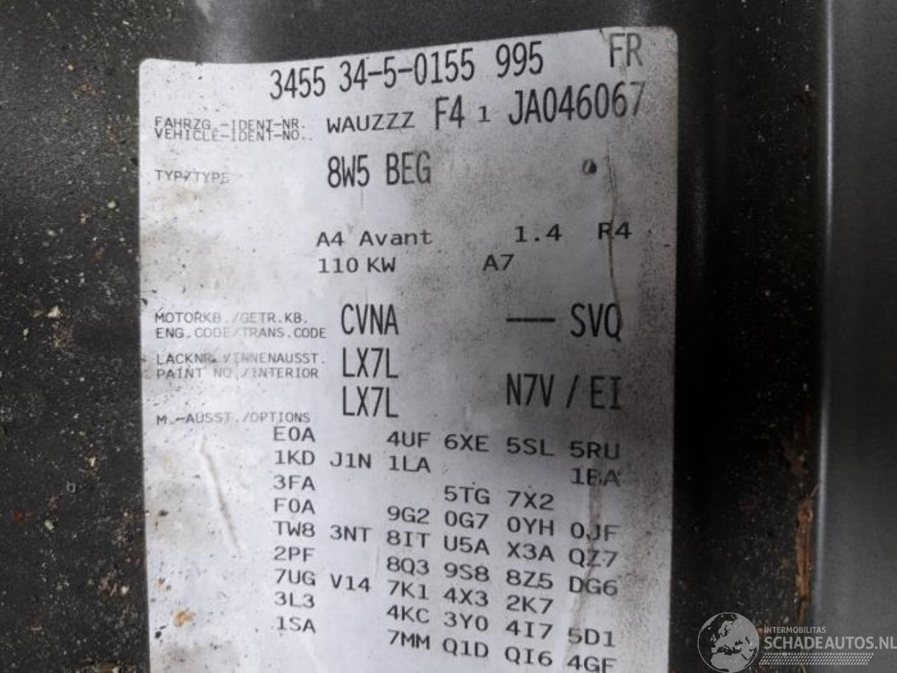 Model: A4 AVANT  A4 Avant (B9), Combi, 2015 1.4 TFSI 16V