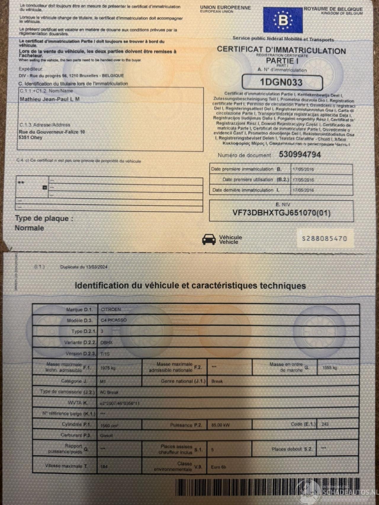 Reg. Certificate(I+II)=OK, C.O.C=OK, CarPass=OK, Technical Control required