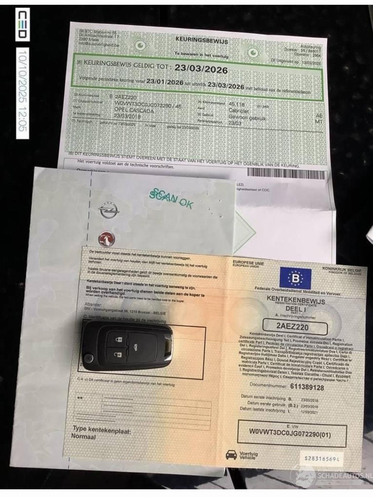 Reg. Certificate(I+II)=OK, C.O.C=OK, Insp. Card=OK, Keys(2), Technical Control required