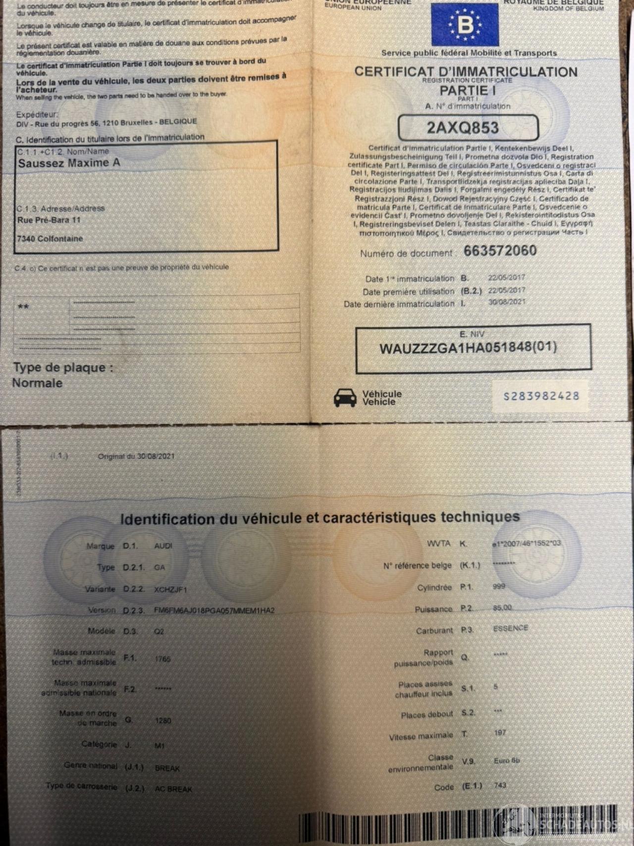 Keuring Na Ongeval (in België) / Kontrolle nach Unfall (im Belgien)