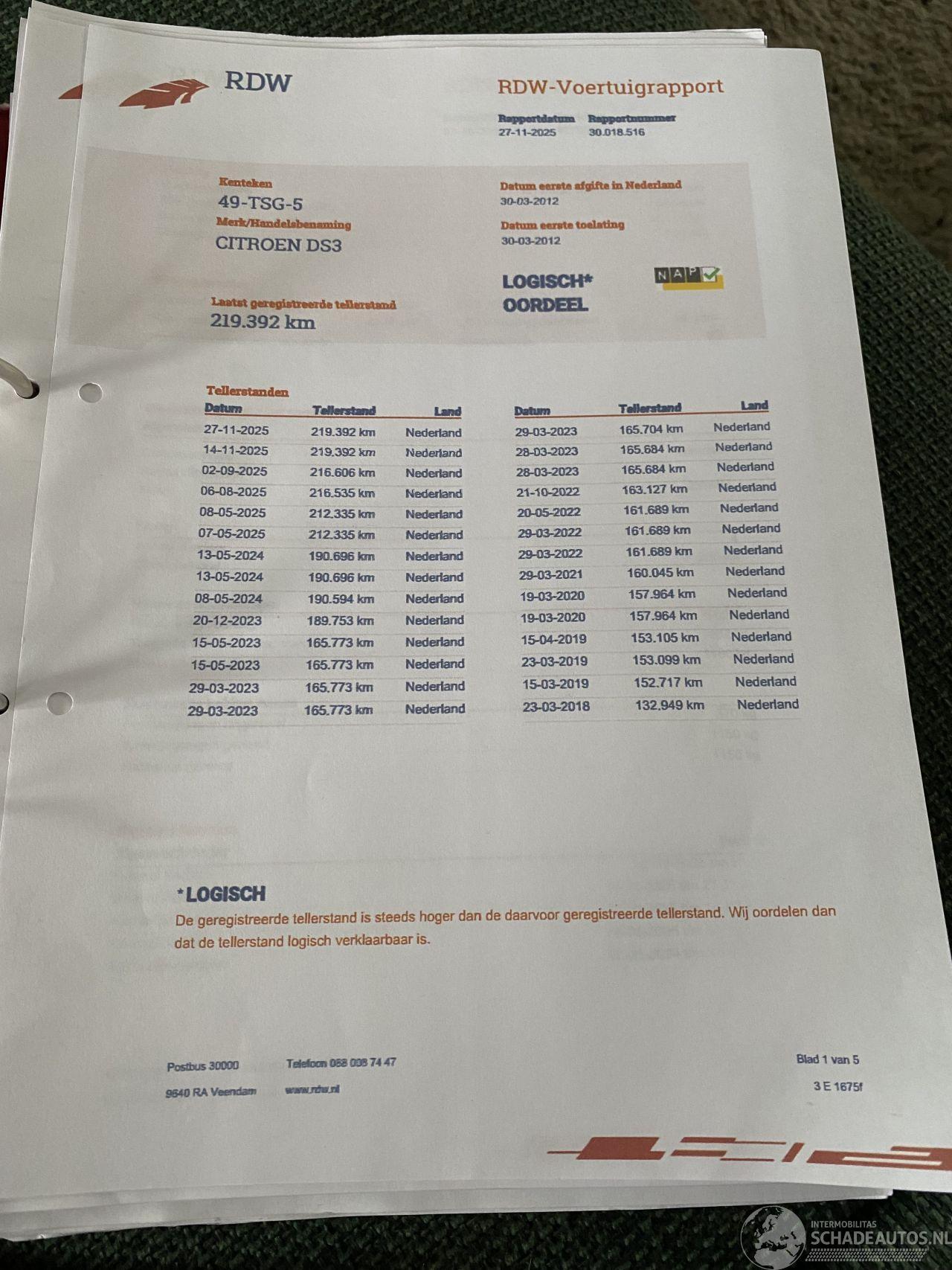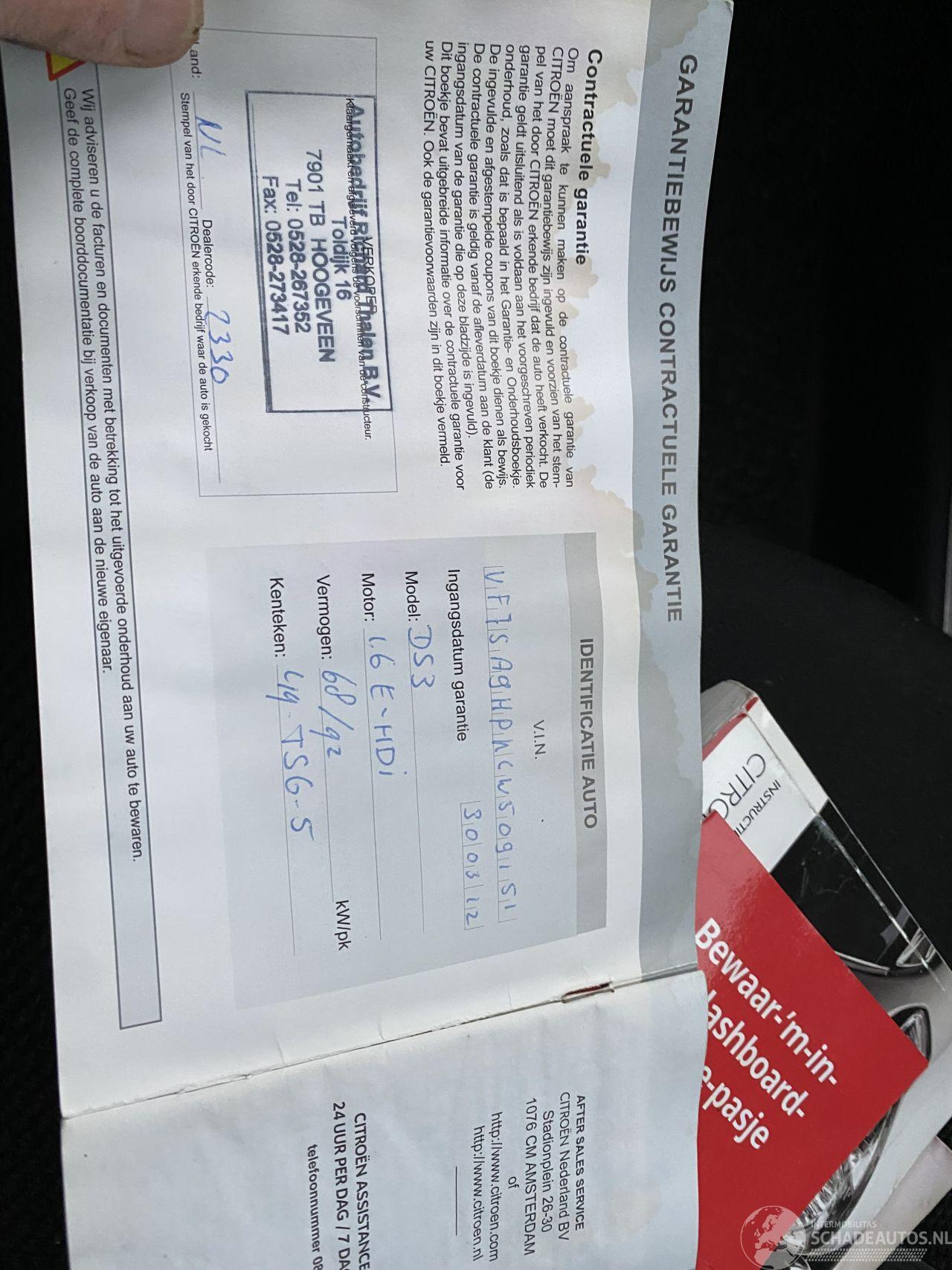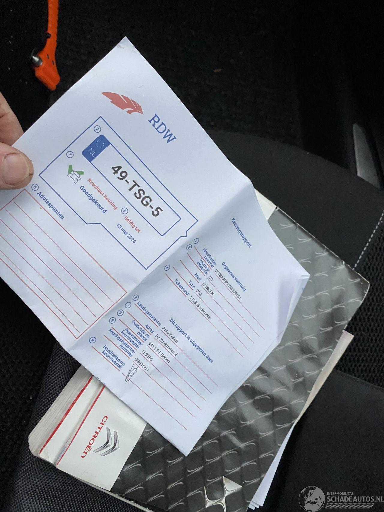 Rechts licht geraakt voorscherm buitenspiegel en driehoekraampje moeten worden vervangen de rest proberen te fixen auto is met een noodspiegel nog een tijdje gebruikt rondom wel wat kleine beschadigingen/gebruikerssporen maar al met al een leuke DS3 2 velgen missen het hartje en linker koplamp heeft iets condens.