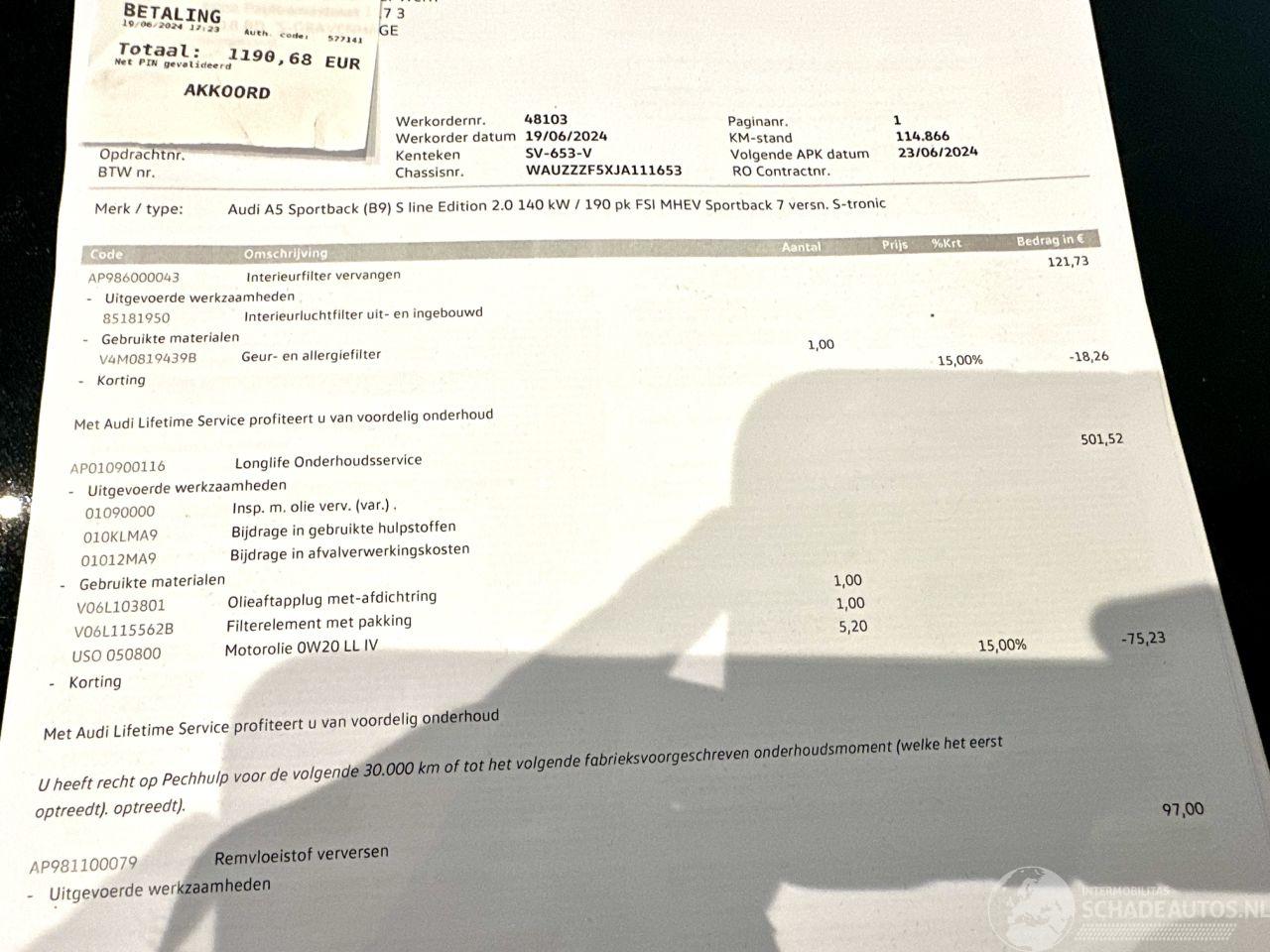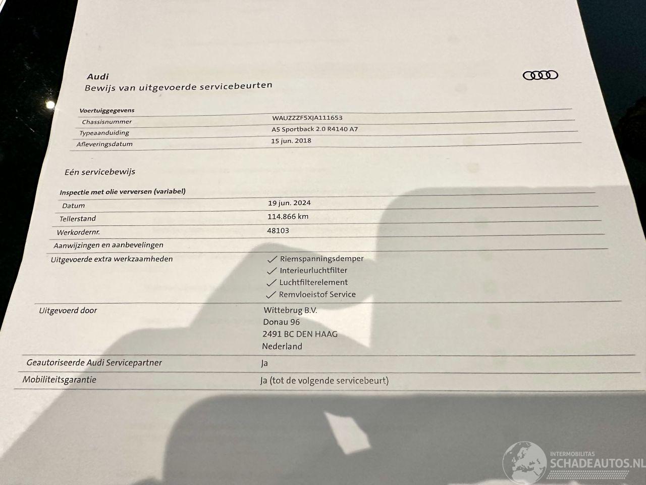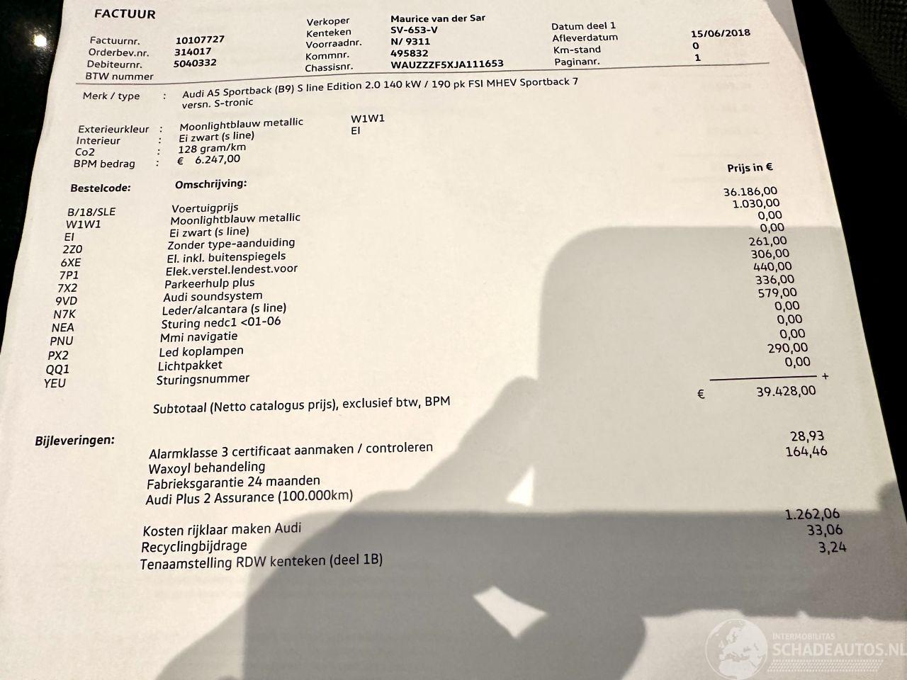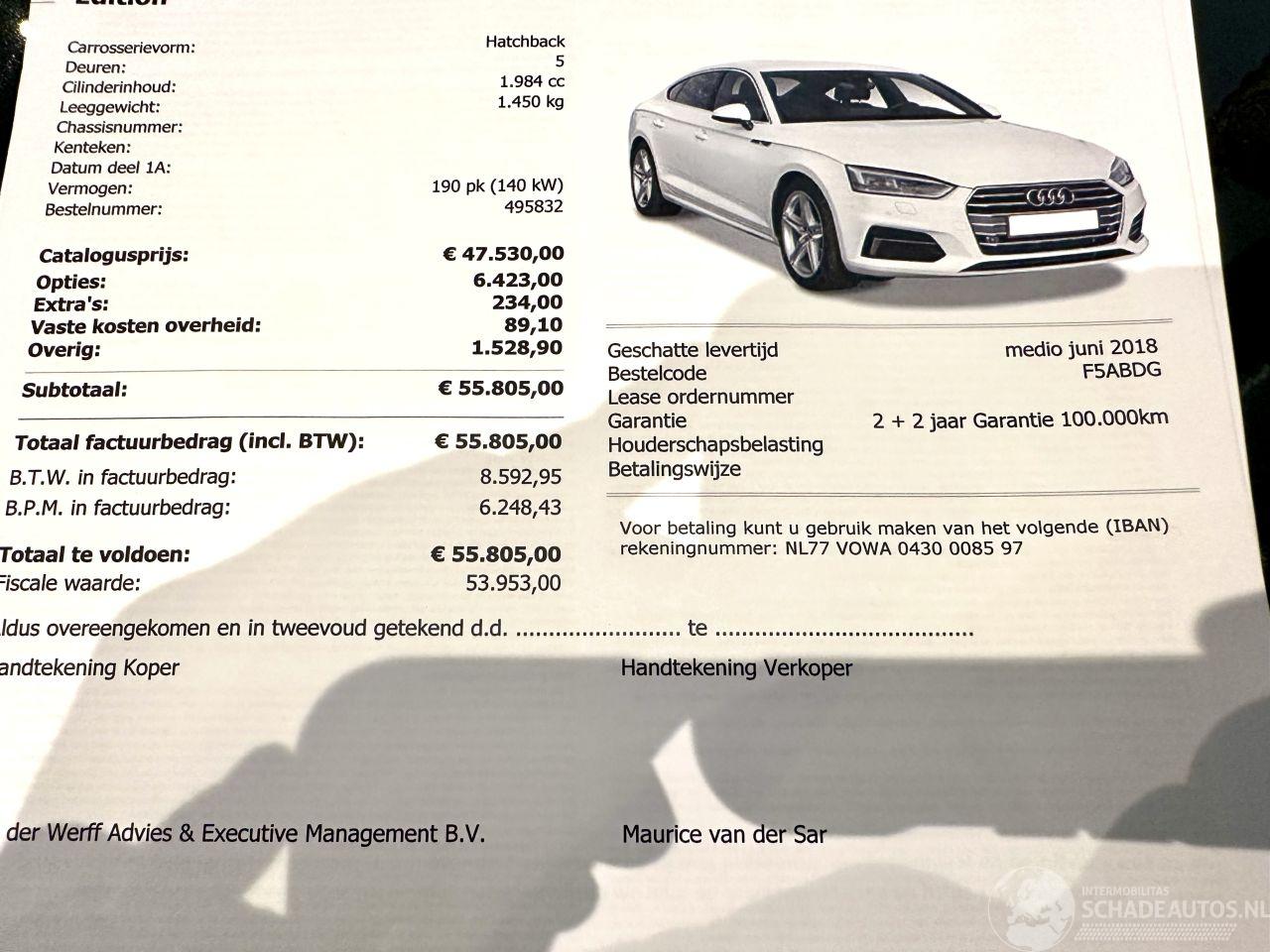 шаблон: A5 Sportback 2.0 TFSI 191pk Aut + F1 MHEV S-line - Nap - 1e Eig - 3x S-line - Alarm - Nav - Keyless - 18 Inch - Elektr Klep